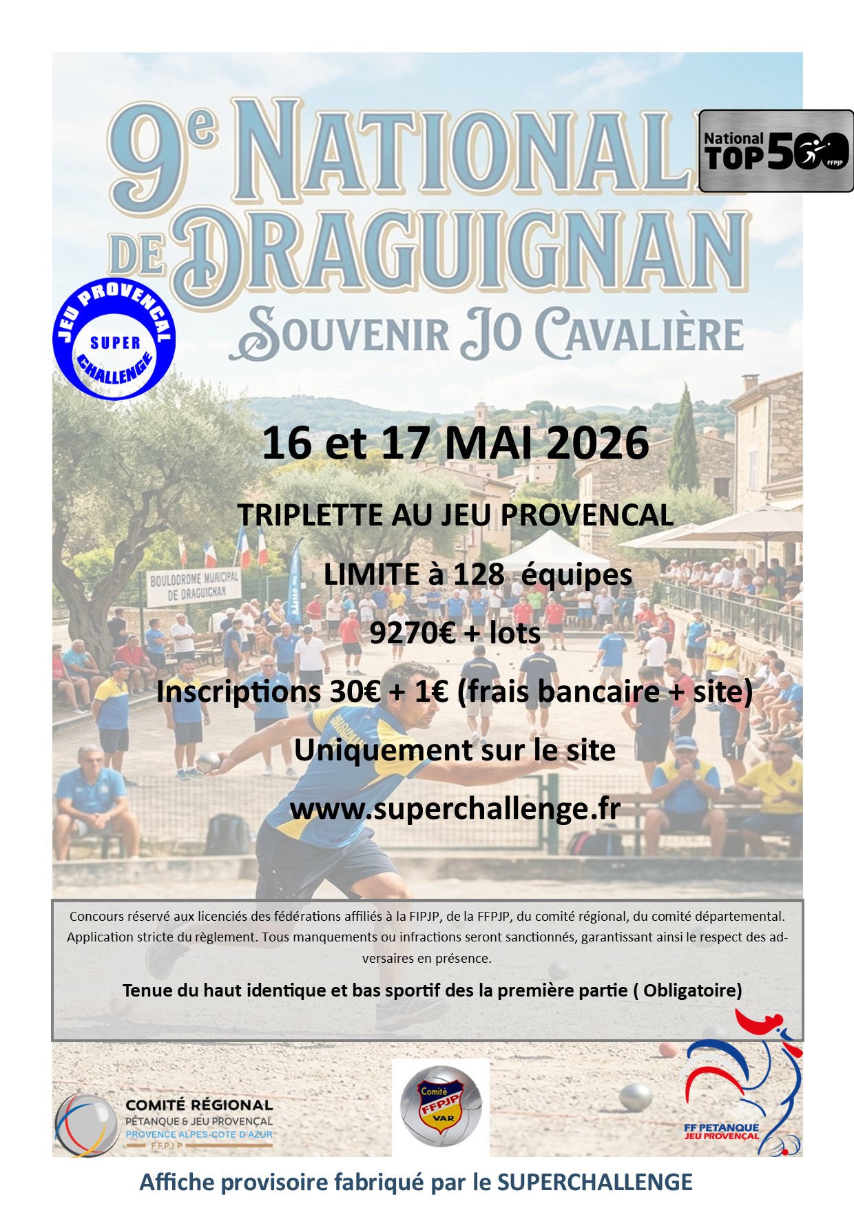 17 / 18 mai 2026 DRAGUIGNAN LES INSCRITS |