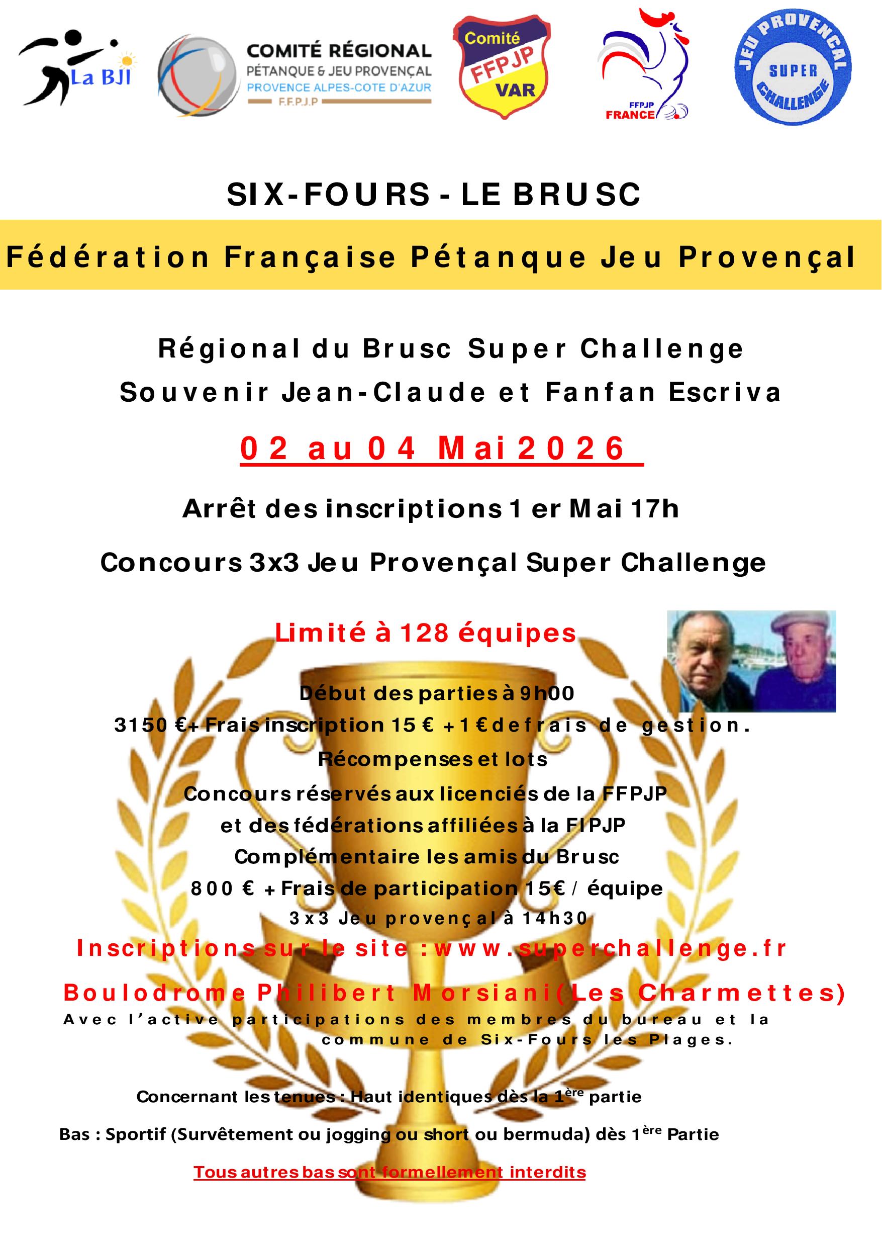 2 / 3 / 4 mai 2026 LE BRUSC Limité à 128 équipes |